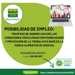 Se ofrece una buena posibilidad de empleo. Traspaso de la tienda de alimentación Saborea en Cuéllar.